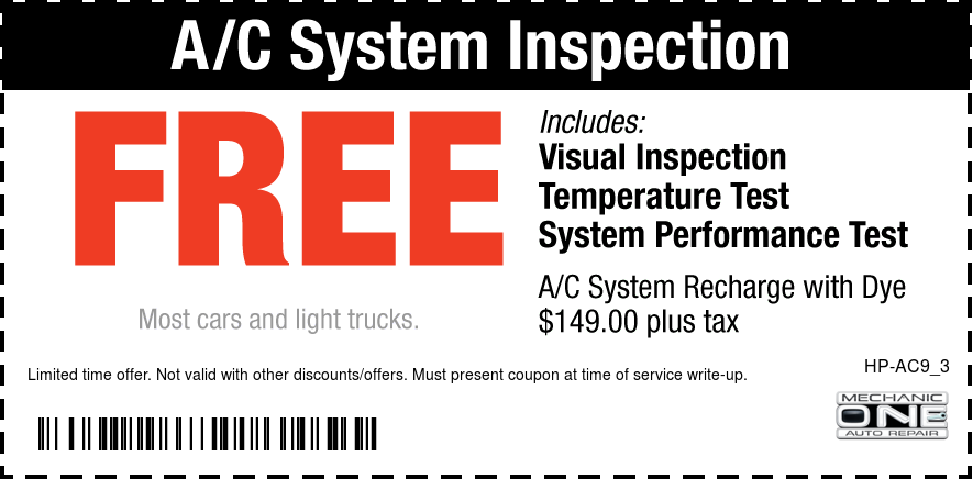 Good only atA/C System Inspection FREE A/C System Recharge $149.00